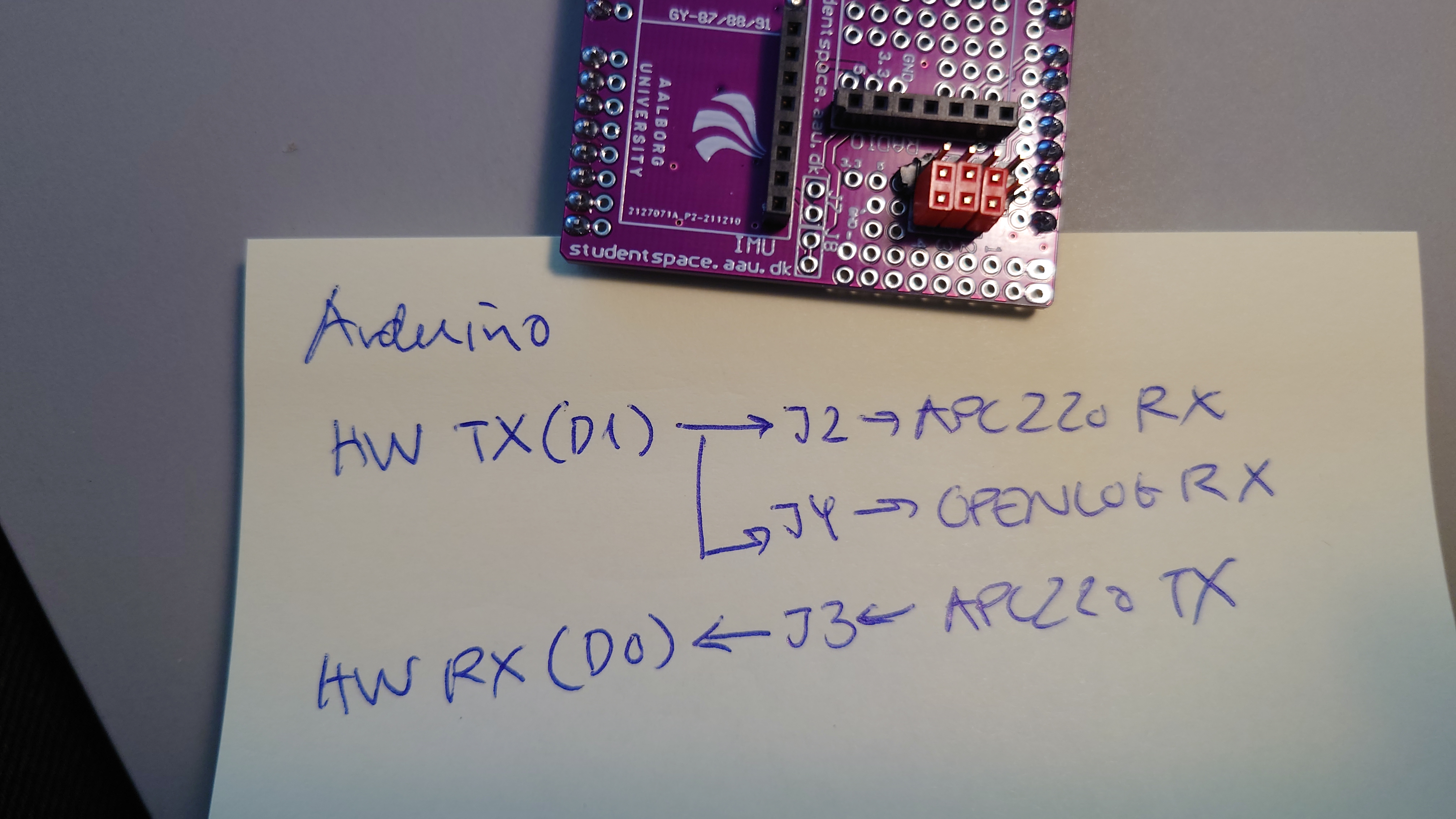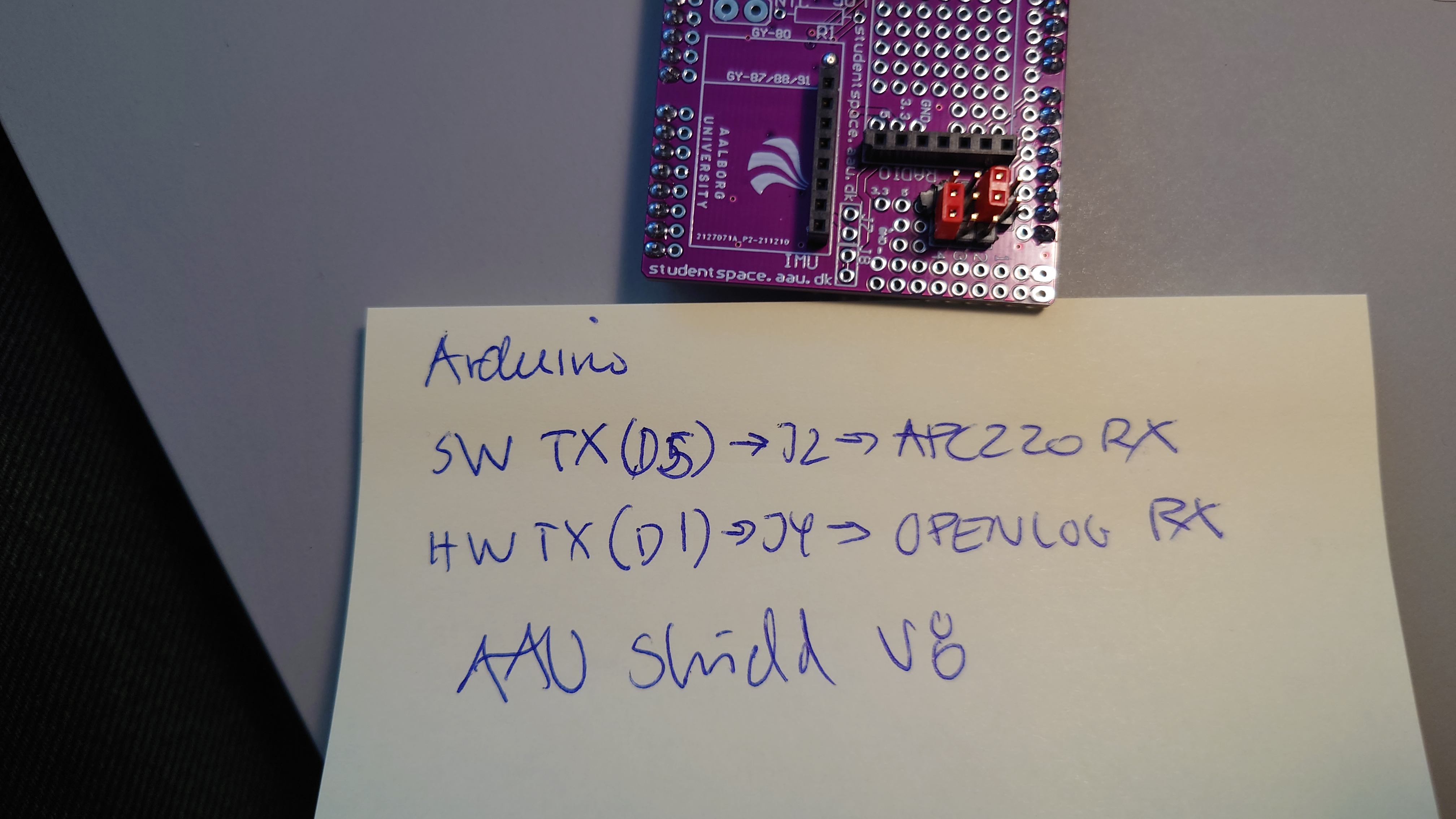 Uno Serial TX to openlog RX: Jumper J4 on ardTx<->apcRX