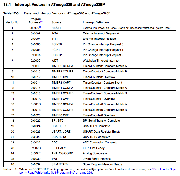 4: 0c 94 29 03 jmp 0x652 ; 0x652 <__vector_1> --- INT0 see above INTO is on addr 0x652