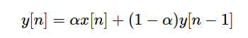 Its also known as a low-pass single pole IIR filter or a first order IIR filter (similar to an analog RC filter) Letting alpha …