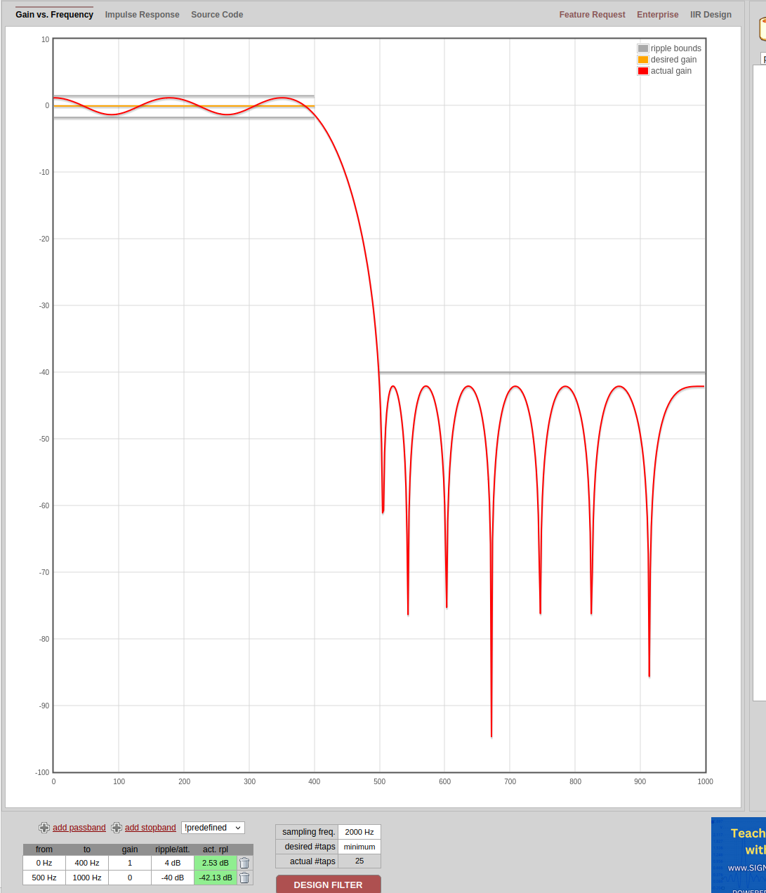 actual ripple = 2.527326551960596 dB
