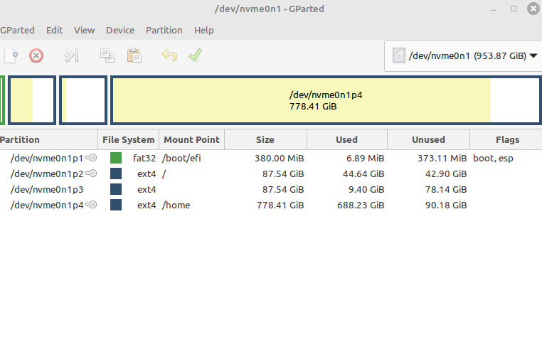 Resize your partitionWhen dealing with several partitions on your hardisk, maybe even with different operating systems you migth sometimes want to concat or resize partitions gparted is the tool for it (gparted : gnome partition editor) Your cant do it on active partition, so normally I do boot on a linux livecd On gparted you can download an ISO image a(600MB) which you use for crfeating a livecd or just down ubuntu,/mintlinux or eqaul for hacking NBNB : run gparted as root sudo gparted -if the livecd dont let you do it without root permissions