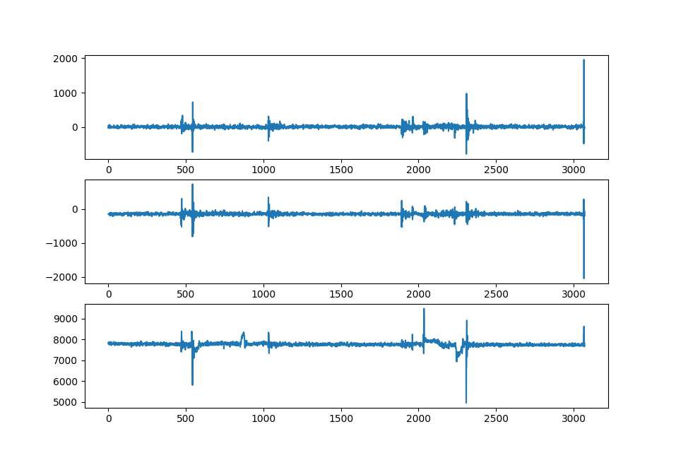 We will calculate mean from 800 to 1100: which give 9.3090 Subtracting this from our raw acc z data we get