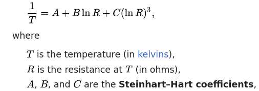 1. Steinhart Hart formula for calculating Temp from resistance