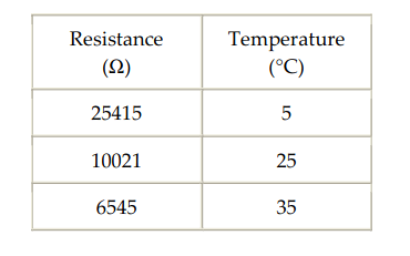 # We will find A,B and C coef for the Steinhart-Hart approximation